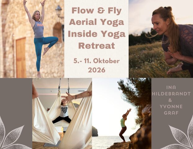 Beim Flow & Fly Yoga Retreat auf Mallorca verbinden wir Inside YogaInside Flow und Aerial Yoga – drei Stile, die unterschiedlicher kaum sein könnten und sich doch perfekt ergänzen: kraftvoll, verspielt, achtsam und voller Flow.