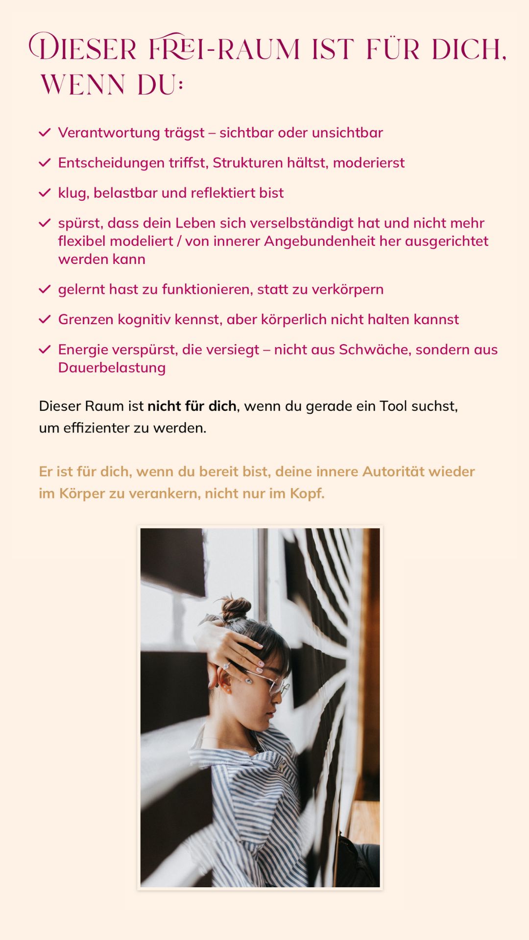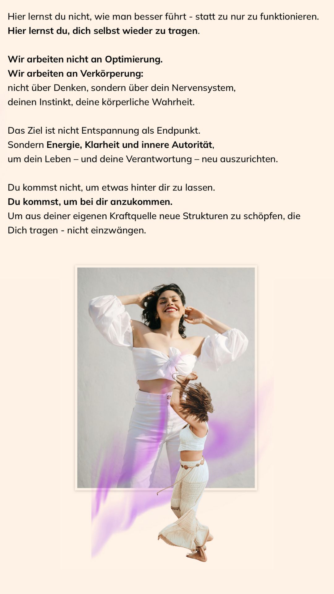 Hier öffnet sich für Dich ein klar gehaltener, körperbasierter Führungsraum.