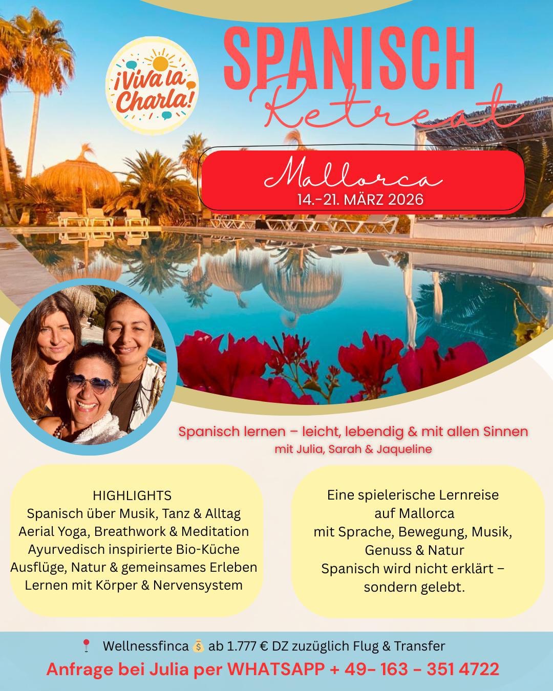 MEHR INFOS HIER:https://wellnessfinca.de/events-und-projekte/spanisch-retreat-mit-julia/